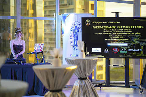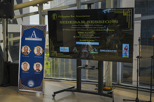 The Philippine Bar Association successfully held its first ever inaugural Sidebar Sessions last 17 October 2025. Framed by the stunning skyline of Bonifacio Global City, at the penthouse suite of Del Rosario Law Centre, the event brought together distinguished members of the legal profession for an evening of connection, reflection, and camaraderie.